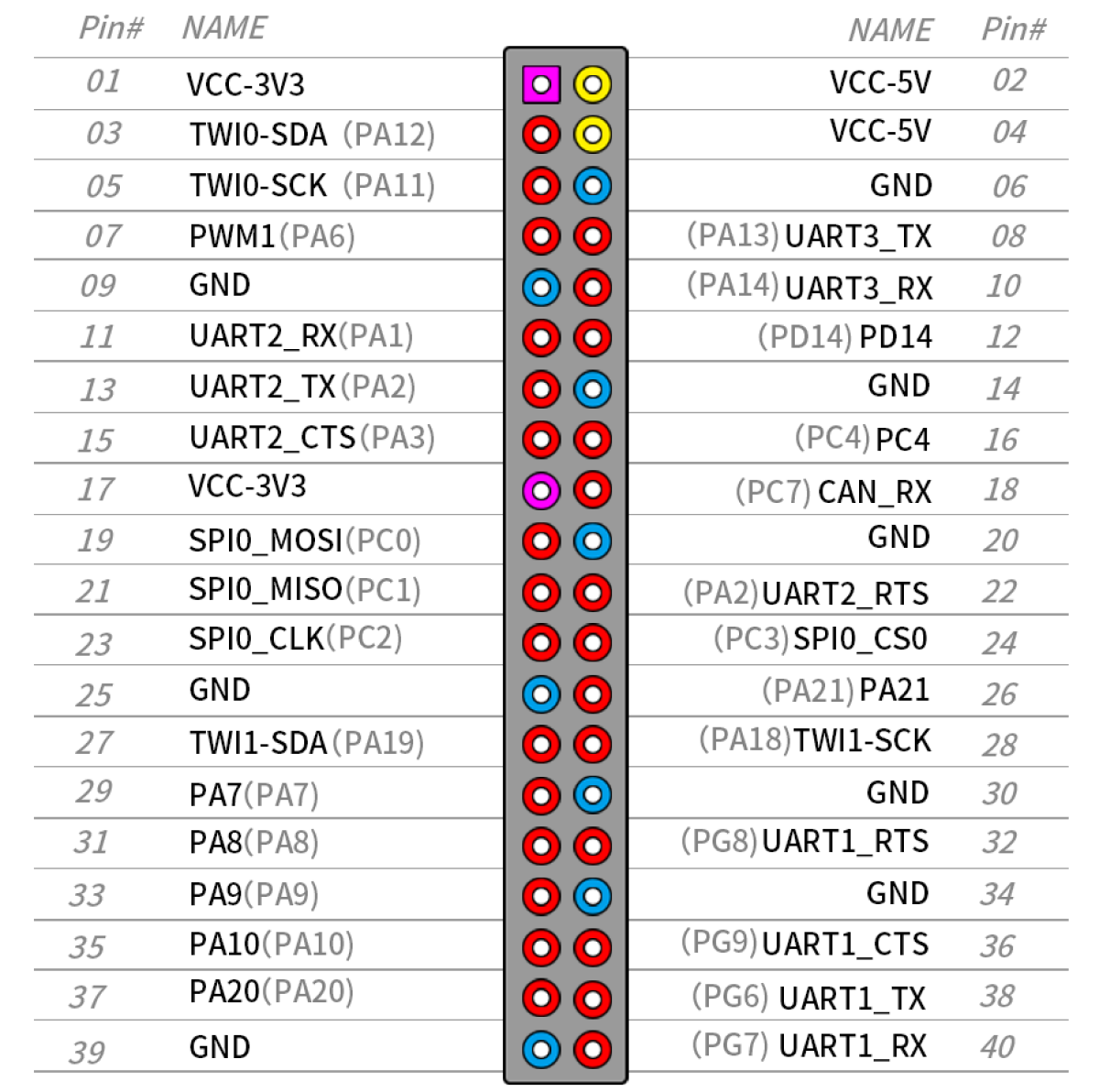 Orange Pi PC2 40 pin connector